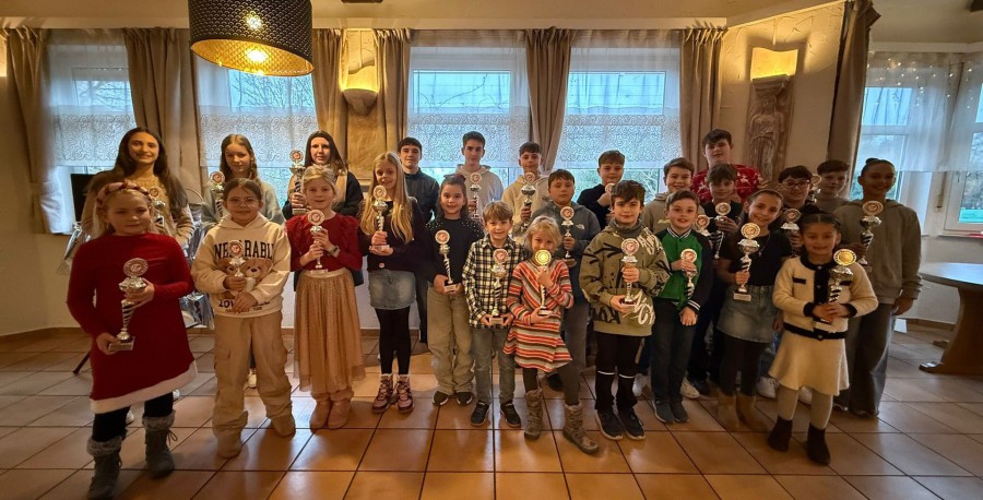 Ca. 60 Jugendliche und deren Eltern und Großeltern ließen es sich nicht nehmen die Feier zu besuchen. Zuerst gab es leckeren Kuchen, als nächstes wurden Weihnachtslieder gesungen. Im Anschluss wurden alle Vereinsmeister 2024 in allen Altersklassen mit Pokalen geehrt. Zum Schluss kam der Nikolaus zu besuch und die traditionelle Tombola fand statt.